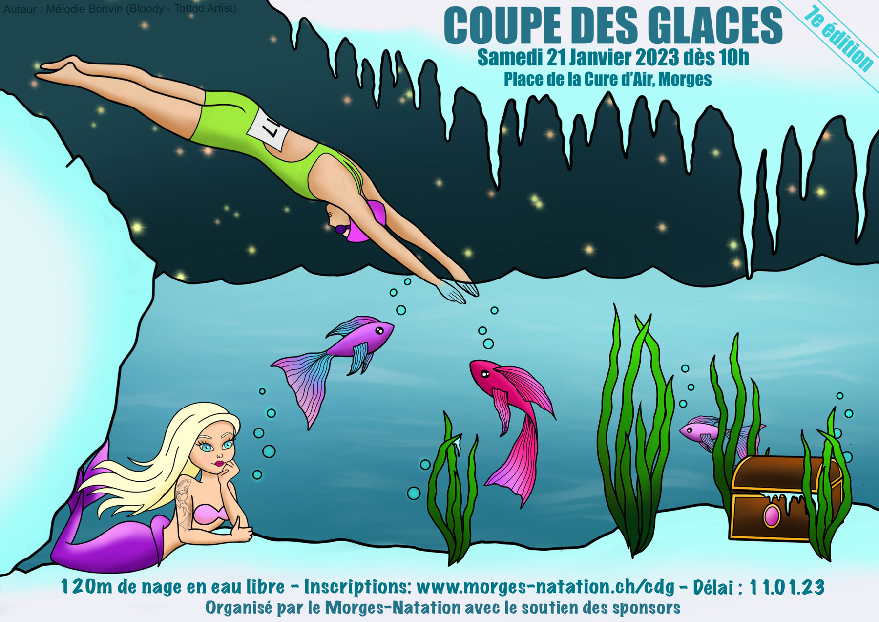 La septième édition aura lieu le 21 janvier 2023. Près de 200 givrés s’élanceront, dès 10h00, par séries de 8 à 10 nageurs, en distinguant les catégories Chronos (chronométrés) de la Catégorie Glaçons (non chronométrés).